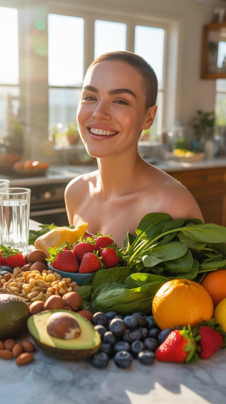 - Fresh fruits like apples, berries, or oranges contain antioxidants that may reduce inflammation and balance oil production.