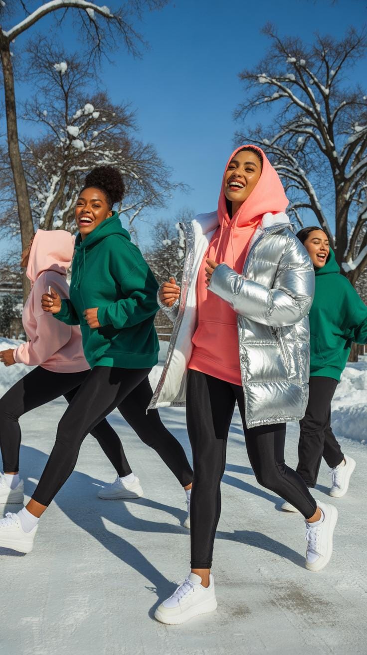 Winter times call for outfits that keep you warm but don’t make you feel boxed in or bored. For plus size athleisure, think about combining cozy leggings in rich hues like deep burgundy or navy with oversized sweatshirts in soft fabrics. A warm fleece-lined hoodie over a moisture-wicking base layer can do wonders for both heat and style. You might also try color-blocked puffer vests layered on top of long-sleeve tops to add dimension without bulk.
