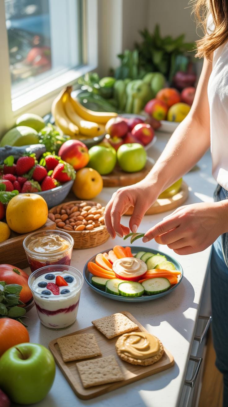 To avoid these pitfalls, swap processed snacks for whole foods like sliced veggies with hummus or a handful of almonds. Keep portions in check by pre-portioning snacks ahead of time. Try to choose snacks that combine protein, fiber, and healthy fats to sustain you better. Maybe experiment with Greek yogurt and berries or apple slices topped with nut butter—simple swaps that keep calories in control while fueling your body.
