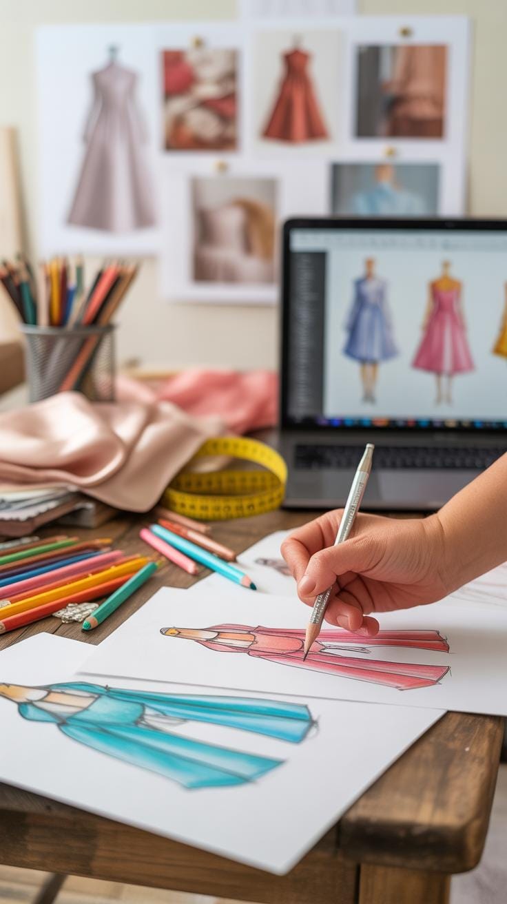 Adding color to your fashion sketches can be tricky, but it’s one of the best ways to show fabric types and emphasize key areas of your design. When you pick colors, think about the mood and purpose of your garment. Are you aiming for something soft and romantic with pastels? Or sharp and modern with bold hues? It’s okay if your color selection evolves as you sketch.