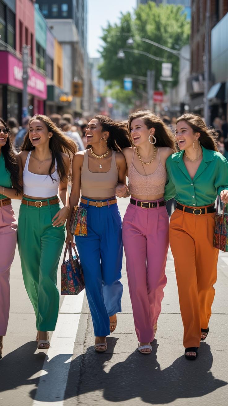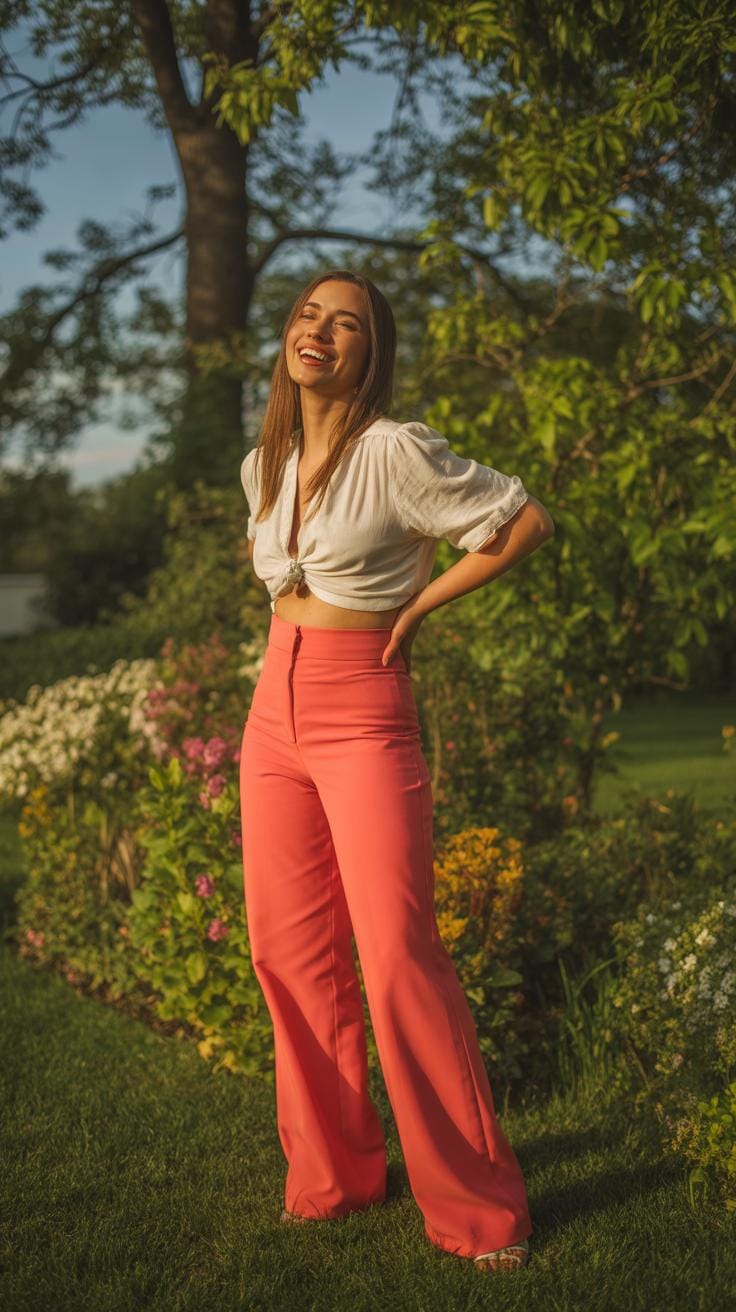 Layering plays a bigger role than you might expect. A blazer or structured jacket over a tucked blouse can smarten up the ensemble instantly. I’ve found cardigans useful too, especially when they skim the hips and balance the high waist nicely. This mix keeps the outfit feeling intentional and tailored instead of bulky — which can sometimes happen with high-waisted bottoms if the top’s length is off.
