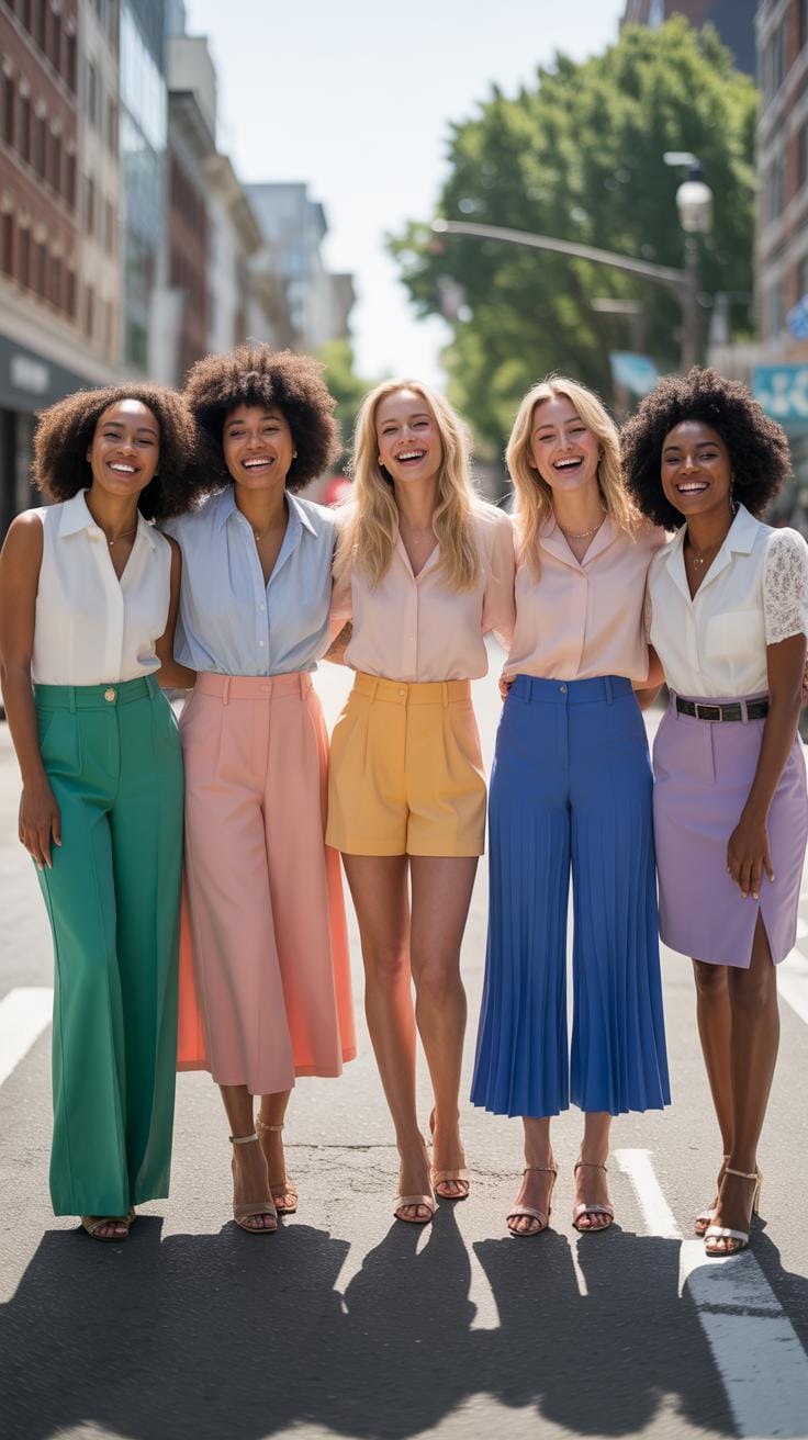 High waisted pants and skirts offer a unique canvas for styling tops that create a professional presence. Something I’ve noticed is how the fit and length of your top can change the entire look. When pairing your tops, think about tucking them in well, but not too tight—just enough to define your waist without pulling awkwardly.