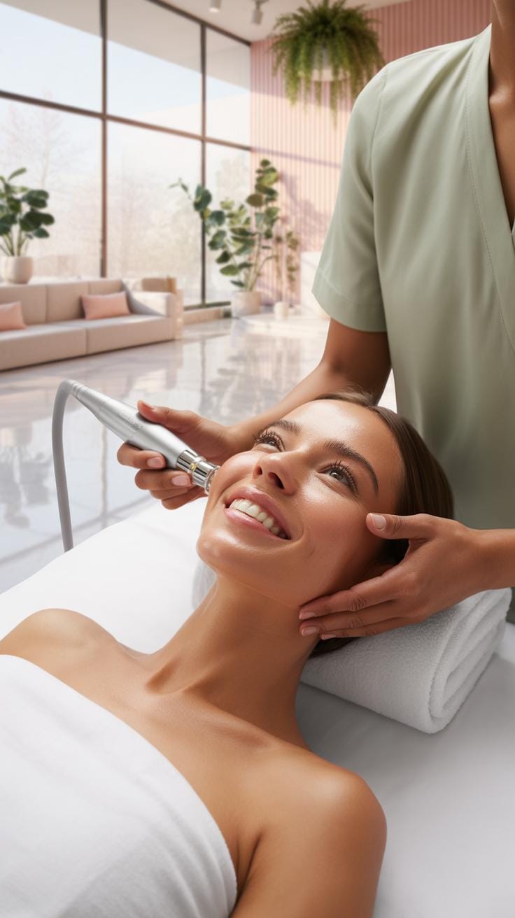 • Radiofrequency (RF): Sends controlled energy through the skin, heating underlying layers to stimulate collagen and elastin production. It usually feels warm but isn’t painful. Results improve skin thickness and firmness.