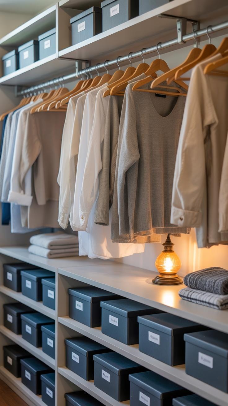 Using uniform hangers can help maintain visual flow and prevent clothes from slipping off. Also, consider open containers for accessories—clear bins or trays let you spot your favorite items without digging.