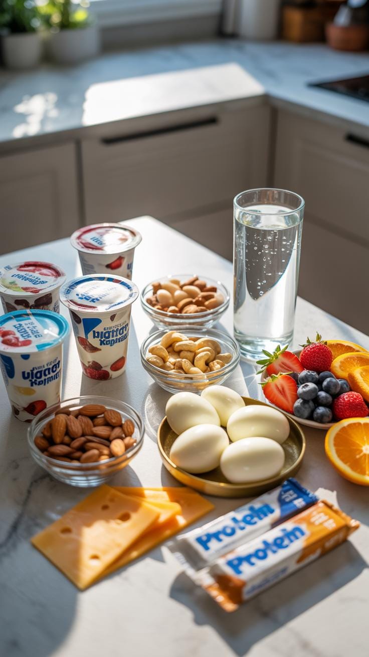 Not everyone loves or can eat nuts and dairy, so feel free to switch things around. For instance, if you don’t like almonds, maybe try roasted chickpeas or edamame instead—both offer a solid protein boost. If you’re avoiding dairy, canned tuna or turkey slices can fill that mid-day gap nicely.