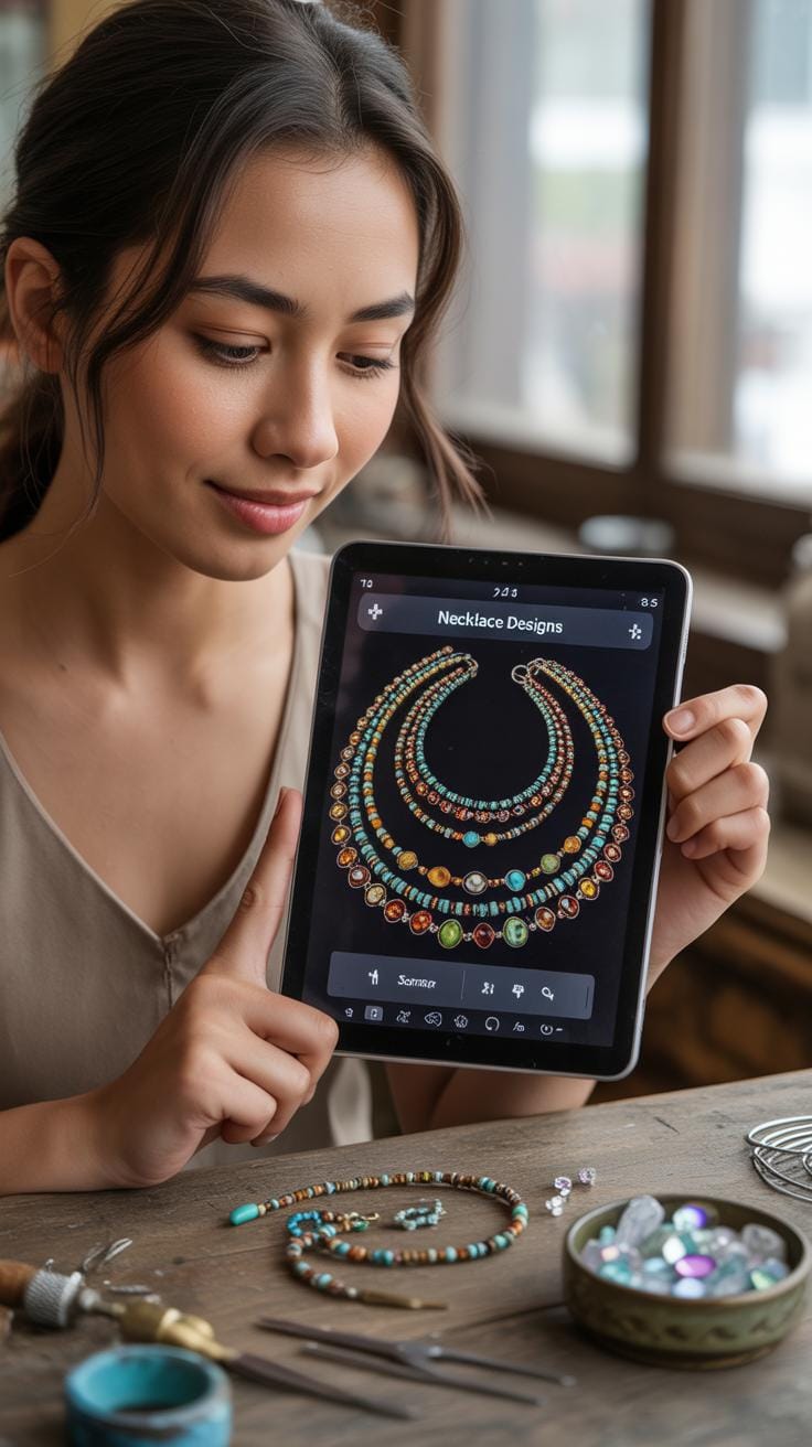 - Pick beads that complement your skin tone or outfit – soft blues or rich garnets often work well